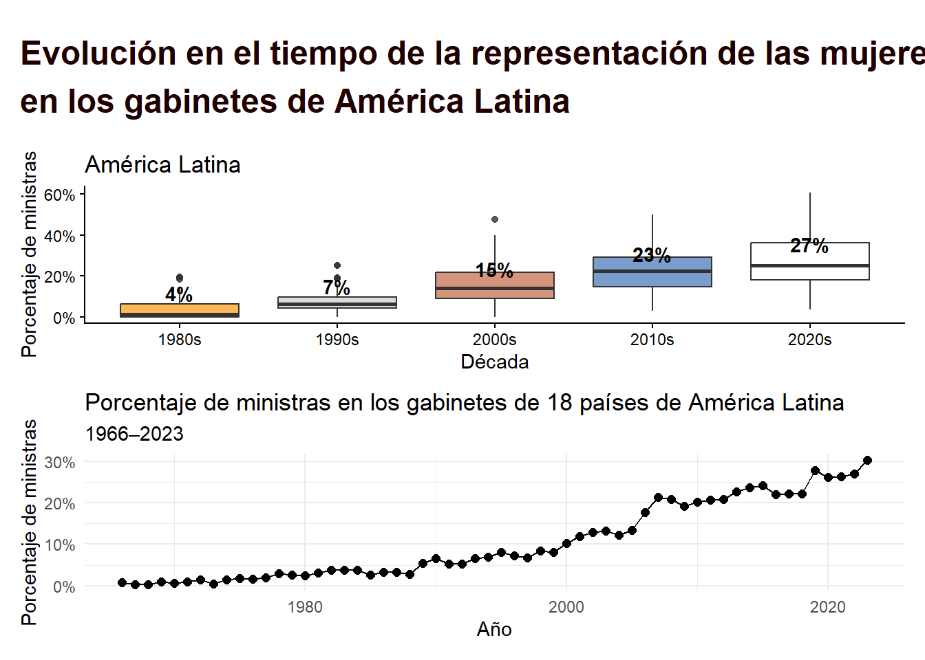 | Estadísticas descriptivas de ministras (1966–2023) | ||||||